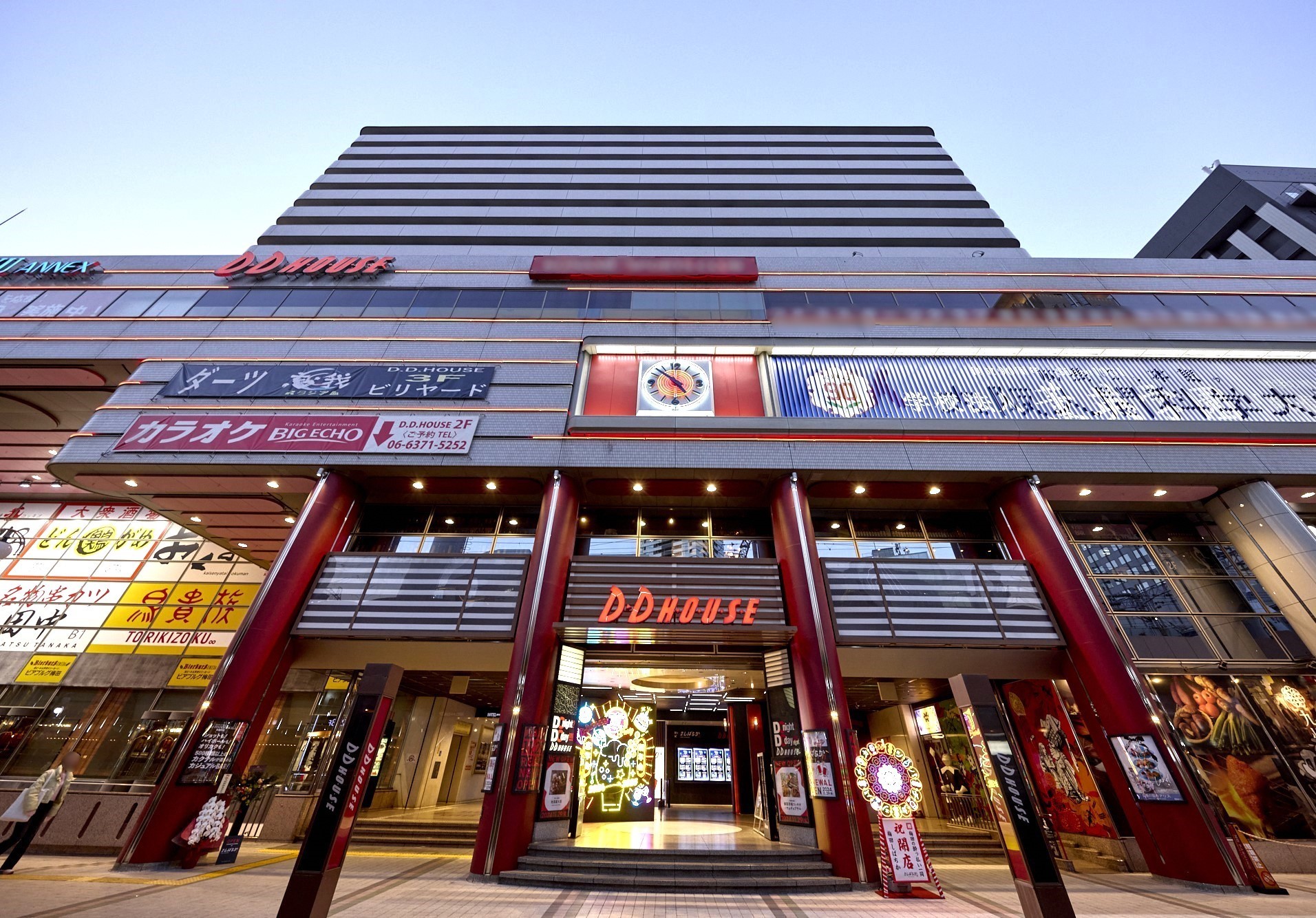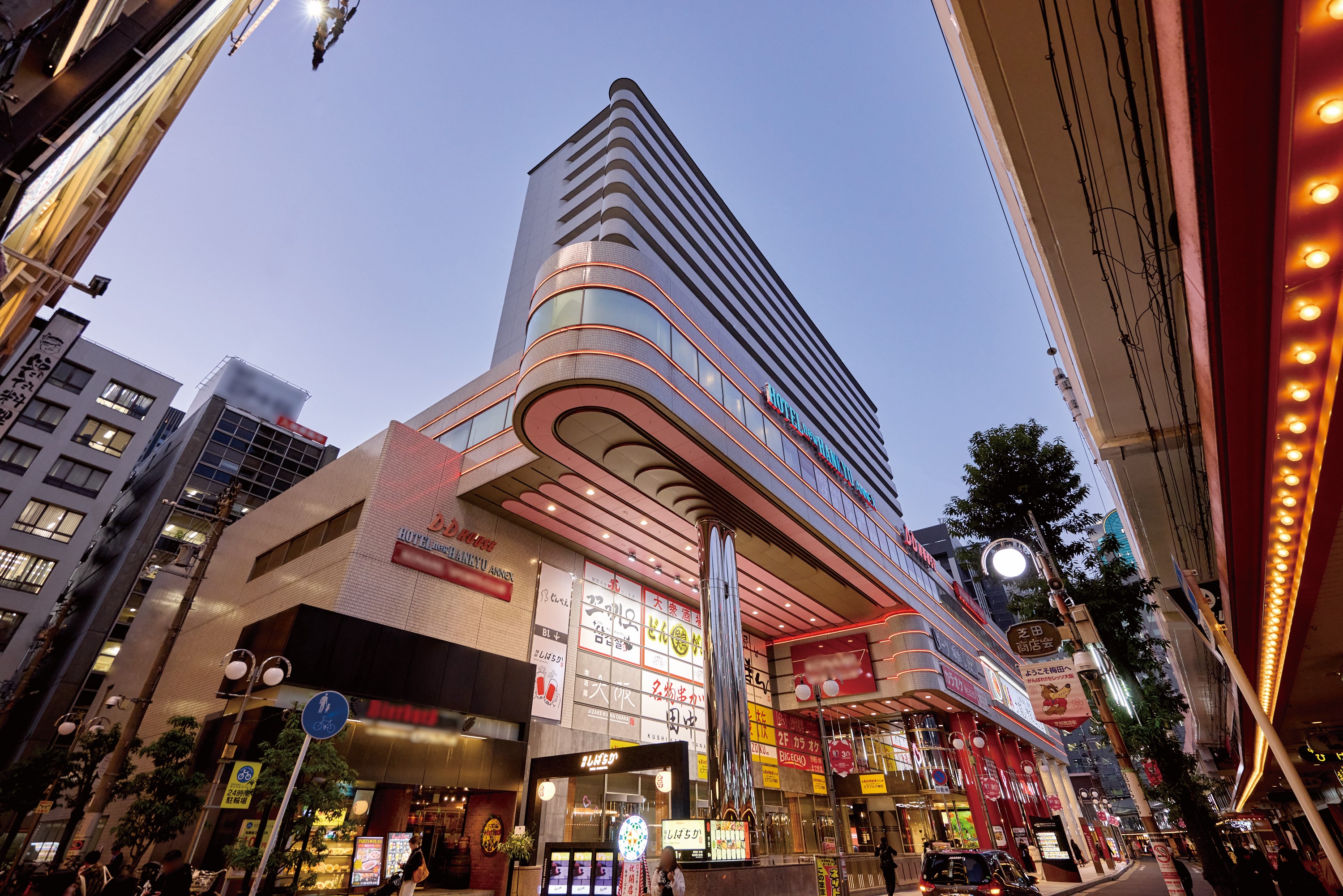 - On its middle- and high-floor levels, the property houses Hotel New Hankyu Annex, a member of the Hankyu-Hanshin-Daiichi Hotel Group, and the first three floors and the basement are occupied by D.D. House, which mostly consists of restaurants.
